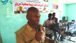 والهب حماس الشباب والشابات مقرر المقاومة الشعبية بمروى محمد الحسن مورا وهو يساند مدير إدارة تشغيل الخريجين