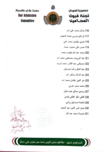 قررت لجنة قبول المحامين بسحب تراخيص بعض المحامين لثبوت تورطهم ومعاونتهم او ارتباطهم بالدعم السريع ياتي في اطار قائمة اولية وهو خطوة في عملية مراجعة وضبط مهنة المحاماة والمؤسسات القانونية كما ان هذا الاجراء يسلط الضؤ علي اهمية تطهير كافة مؤسسات الدولة من اي انتماءات او تاثيرات غير قانونية بما يضمن نزاهة واستقلال القضاء والقانون ويحقق الثقة المجتمعية في الهيئات القانونية والعدالة بالدولة السودانية