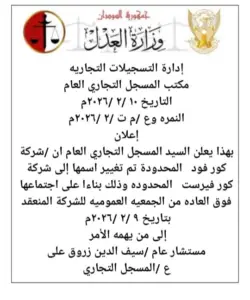 الرئيسية/اقتصاد/شركة كور فود المحدودة اقتصاد أخر الأخبار شركة كور فود المحدودة منذ أسبوعين0 37 أقل من دقيقة الجمعة 13 فبراير 2026م الموافق 25 شعبان 1447ه اعلانات رقم العدد (950) منذ أسبوعين0 37 أقل من دقيقة شاركها فيسبوك X ماسنجر ماسنجر واتساب تيلقرام
