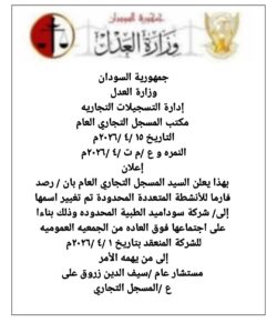 الرئيسية/اقتصاد/اعلانات السبت/ رصد فارما للانشطة المتعددة المحدودة اقتصاد أخر الأخبار اعلانات السبت/ رصد فارما للانشطة المتعددة المحدودة منذ 22 ساعة0 9 أقل من دقيقة السبت 18 ابريل 2026م الموافق 1 ذوالقعدة 1447ه رقم العدد 999 نشر إلكتروني منذ 22 ساعة0 9 أقل من دقيقة شاركها فيسبوك X ماسنجر ماسنجر واتساب تيلقرام